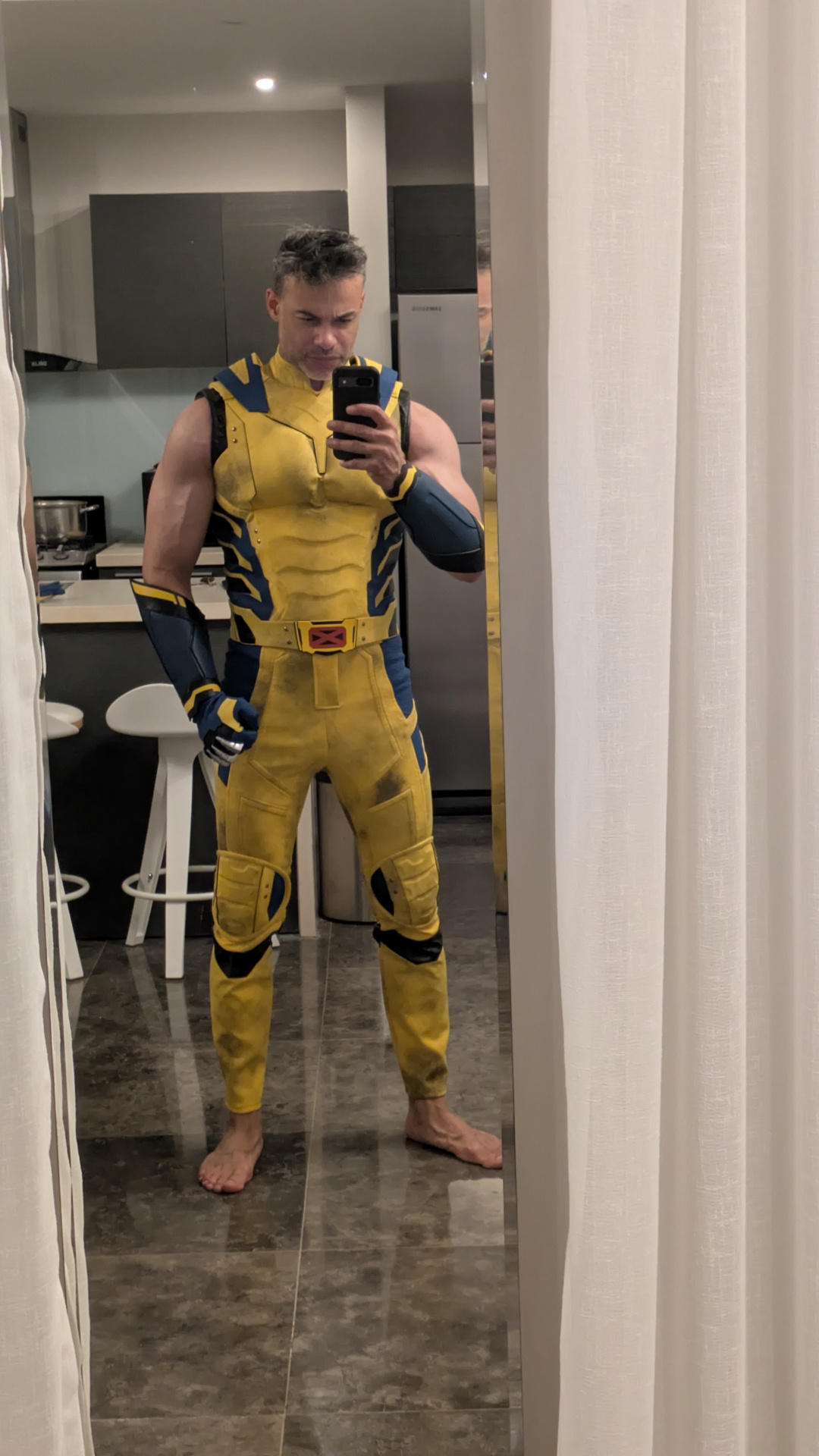 This made to measure costume was a perfect for right out of the box. This was shocking enough. But attention to detail and quality of construction was a n even greater surprise. This blurs the line between a costume and a movie prop replica.the suits weathering is well executed and is far more noticable in person than in the photos on the website. I was intending to weather the suit myself and add bullet holes, but couldn't bring myself to tamper with their work once I saw the final product. If it's in your budget, I highly recommend this costume if you're looking for a wolverine cosplay.